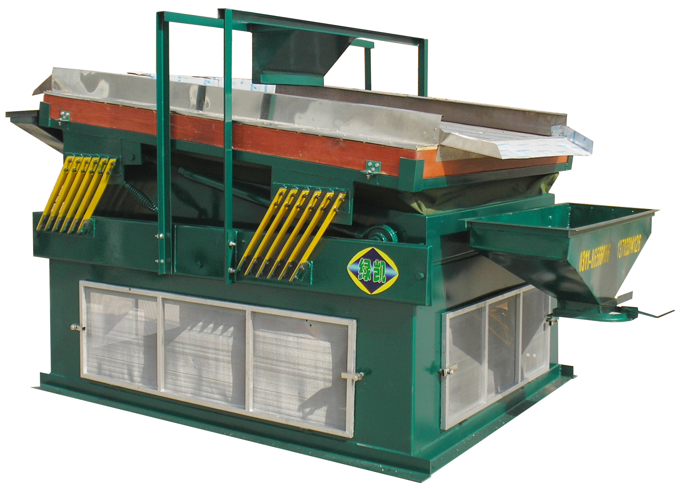 該機利用氣流與振動摩擦對物料產生的作用通過調整振幅和傾角,可將谷物中的石塊等重雜質分離,促使比重較大的物料沉在底部,貼著篩面由低向高運動;比重較小的物料則懸浮在表面由高向低運動,繼而達到分離的效果。具有移動方便,振幅可調,去石效果好等特性。