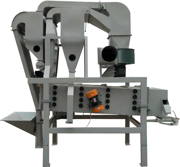 該機集去石、風選、篩選、分級于一體,主要適用于葵花子、西瓜子、南瓜子等各類物料的去石、清選、分級處理,該機采用氣流提升,極大的降低了瓜子的破碎率,同時可將物料中的石頭、土塊等重雜質去除;該機的風選功能主要 靠立式空氣篩來完成,可去除物料中的輕雜質并集中排放;較好的物料進入振動篩,振動篩可根據需求設定為:兩層、三層或四層篩結構,可同時去除大雜、小雜,并將物料分為大粒、小粒等品種并從不同的出口排出;根據不同物料的外型尺寸大小,通過更換不同篩片,可對多種物料進行清選分級處理。